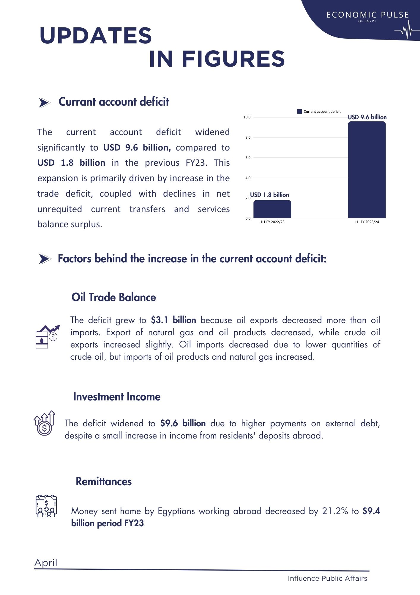 The Egyptian economy experienced a notable shift in its Balance of Payments (BOP), registering a deficit of US$ 409.6 million, contrasting sharply with the previous fiscal year's surplus of US$ 599.1 million. This change was primarily driven by a significant increase in the current account deficit, which reached US$ 9.6 billion, up from US$ 1.8 billion previously. Factors contributing to this surge included a rise in the trade deficit, declining remittances from Egyptians working abroad, and widening investment income deficit.