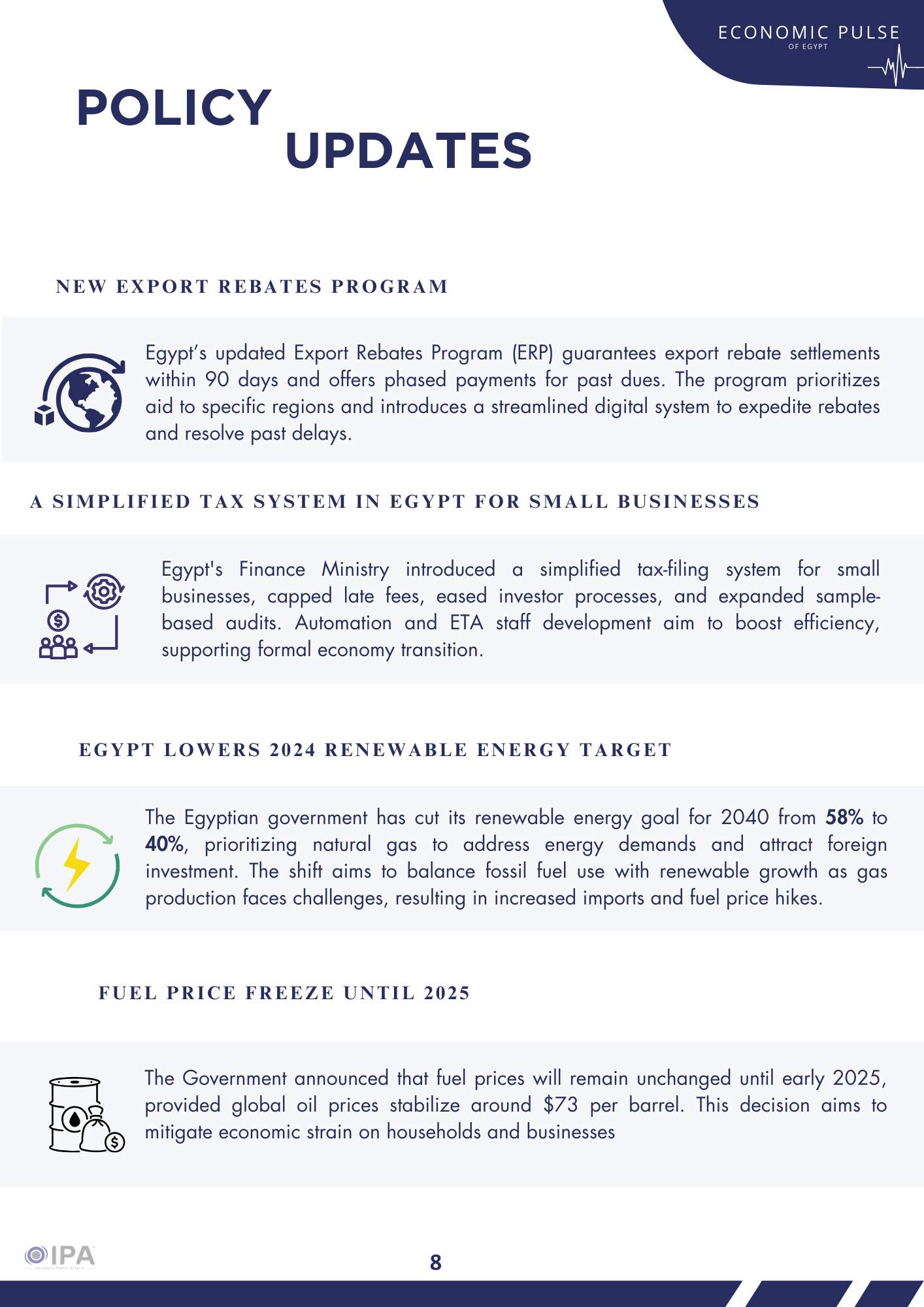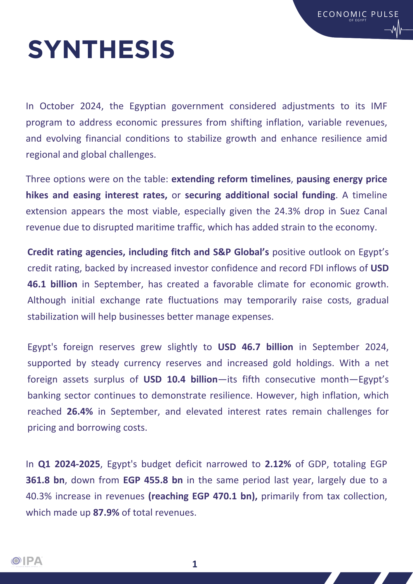 Three options were on the table: extending reform timelines, pausing energy price hikes and easing interest rates, or securing additional social funding. A timeline extension appears the most viable, especially given the 24.3% drop in Suez Canal revenue due to disrupted maritime traffic, which has added strain to the economy.