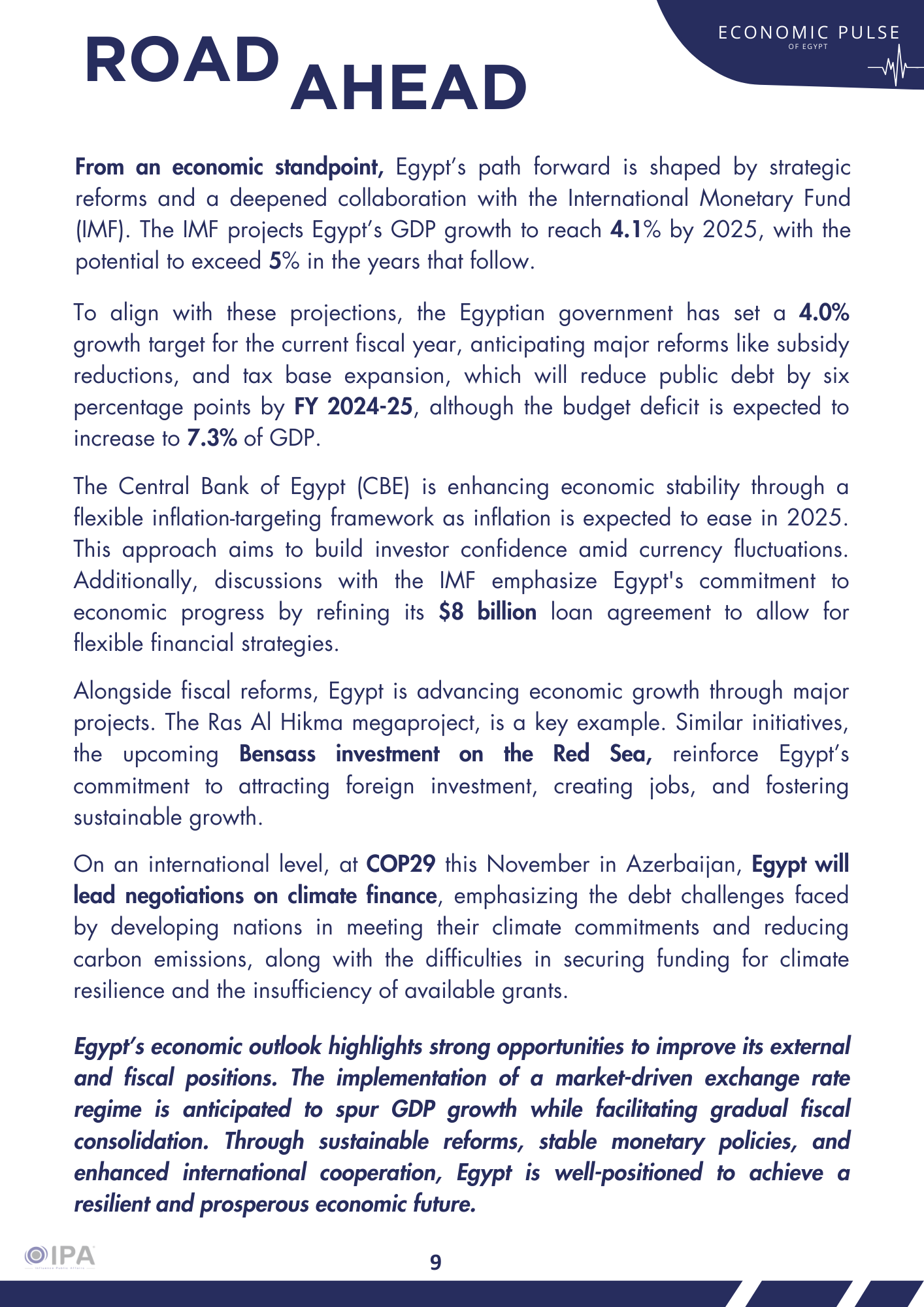 Credit rating agencies, including fitch and S&P Global’s positive outlook on Egypt’s credit rating, backed by increased investor confidence and record FDI inflows of USD 46.1 billion in September, has created a favorable climate for economic growth. Although initial exchange rate fluctuations may temporarily raise costs, gradual stabilization will help businesses better manage expenses.