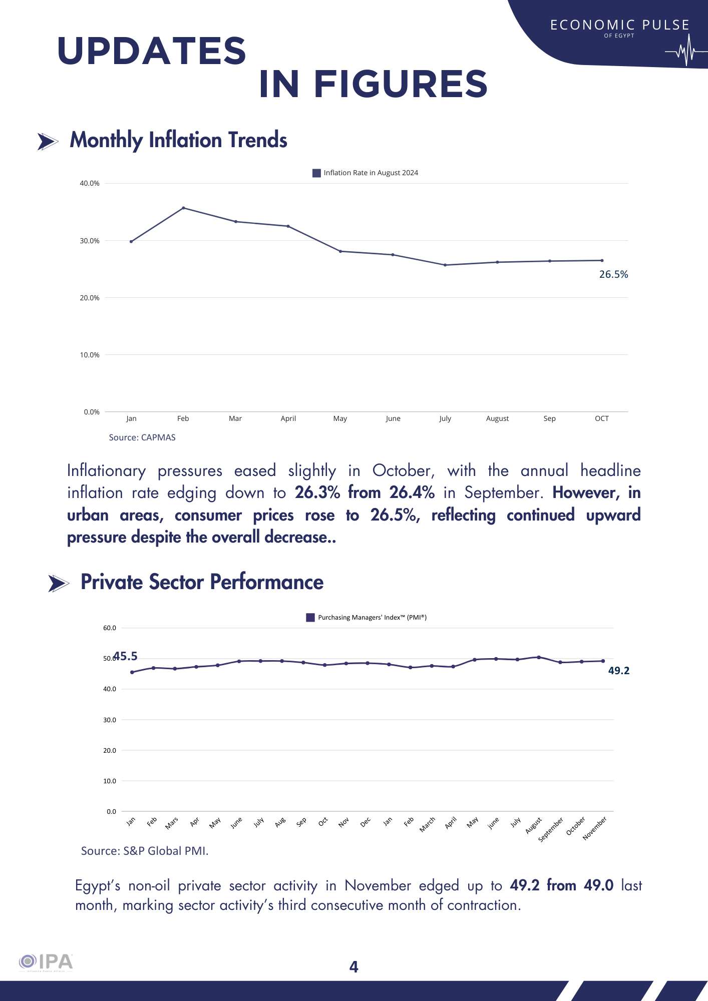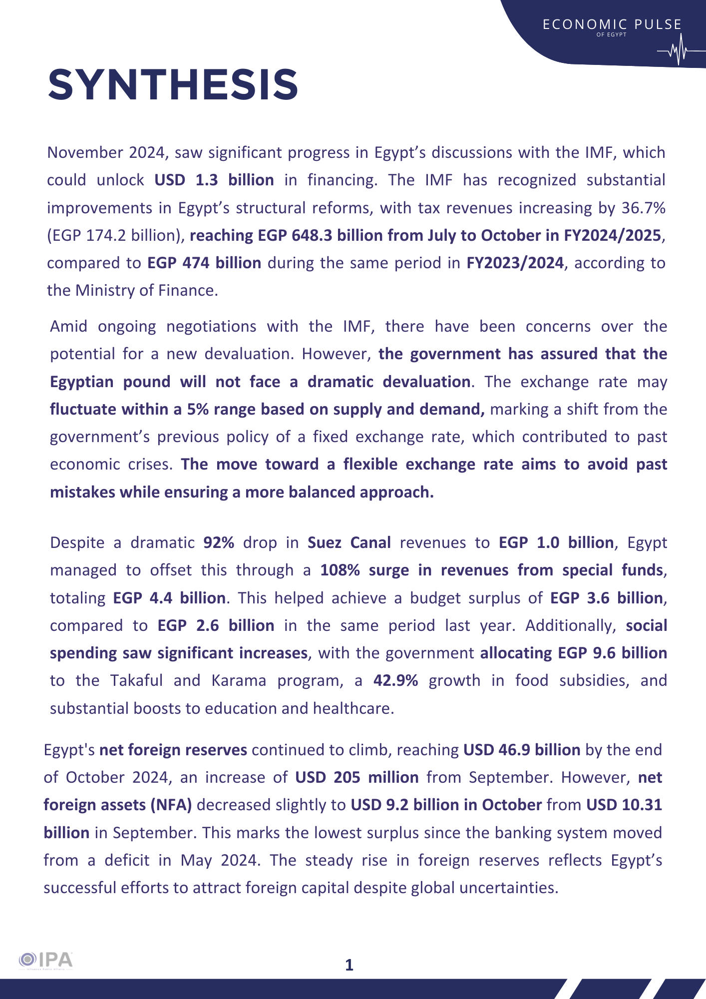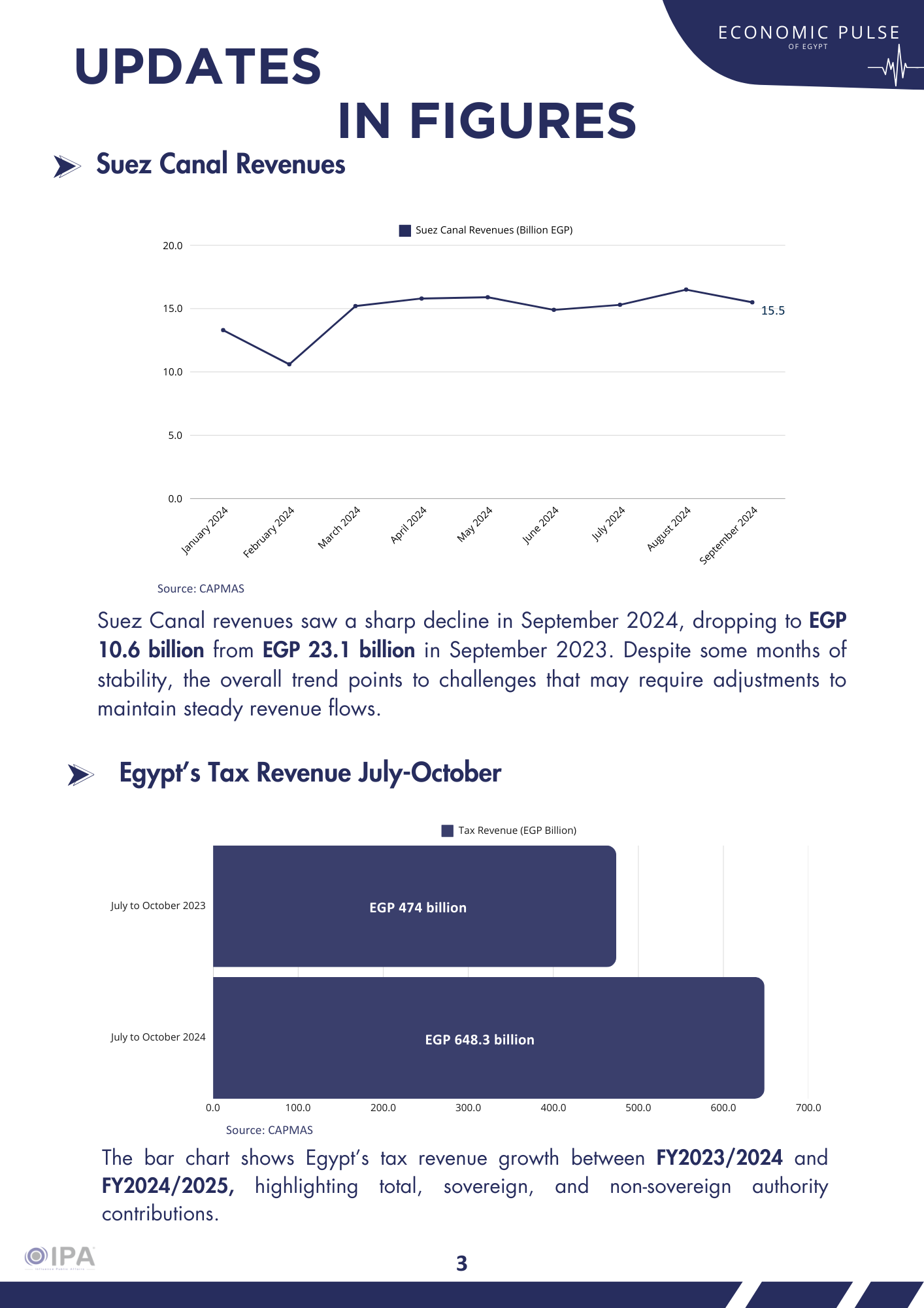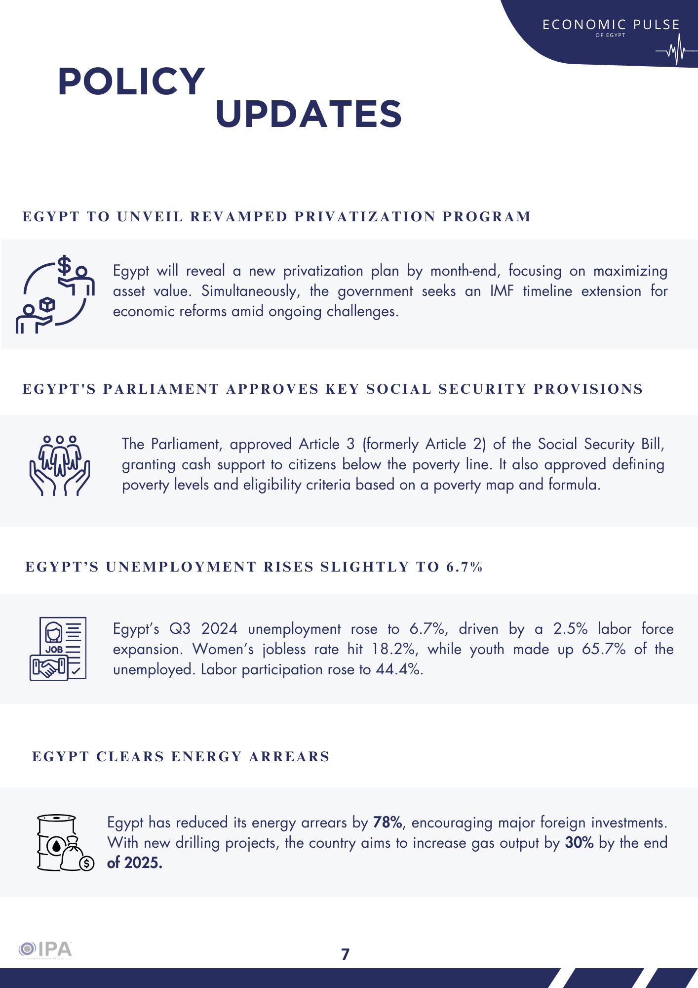 Despite a dramatic 92% drop in Suez Canal revenues to EGP 1.0 billion, Egypt managed to offset this through a 108% surge in revenues from special funds, totaling EGP 4.4 billion. This helped achieve a budget surplus of EGP 3.6 billion, compared to EGP 2.6 billion in the same period last year. Additionally, social spending saw significant increases, with the government allocating EGP 9.6 billion to the Takaful and Karama program, a 42.9% growth in food subsidies, and substantial boosts to education and healthcare.