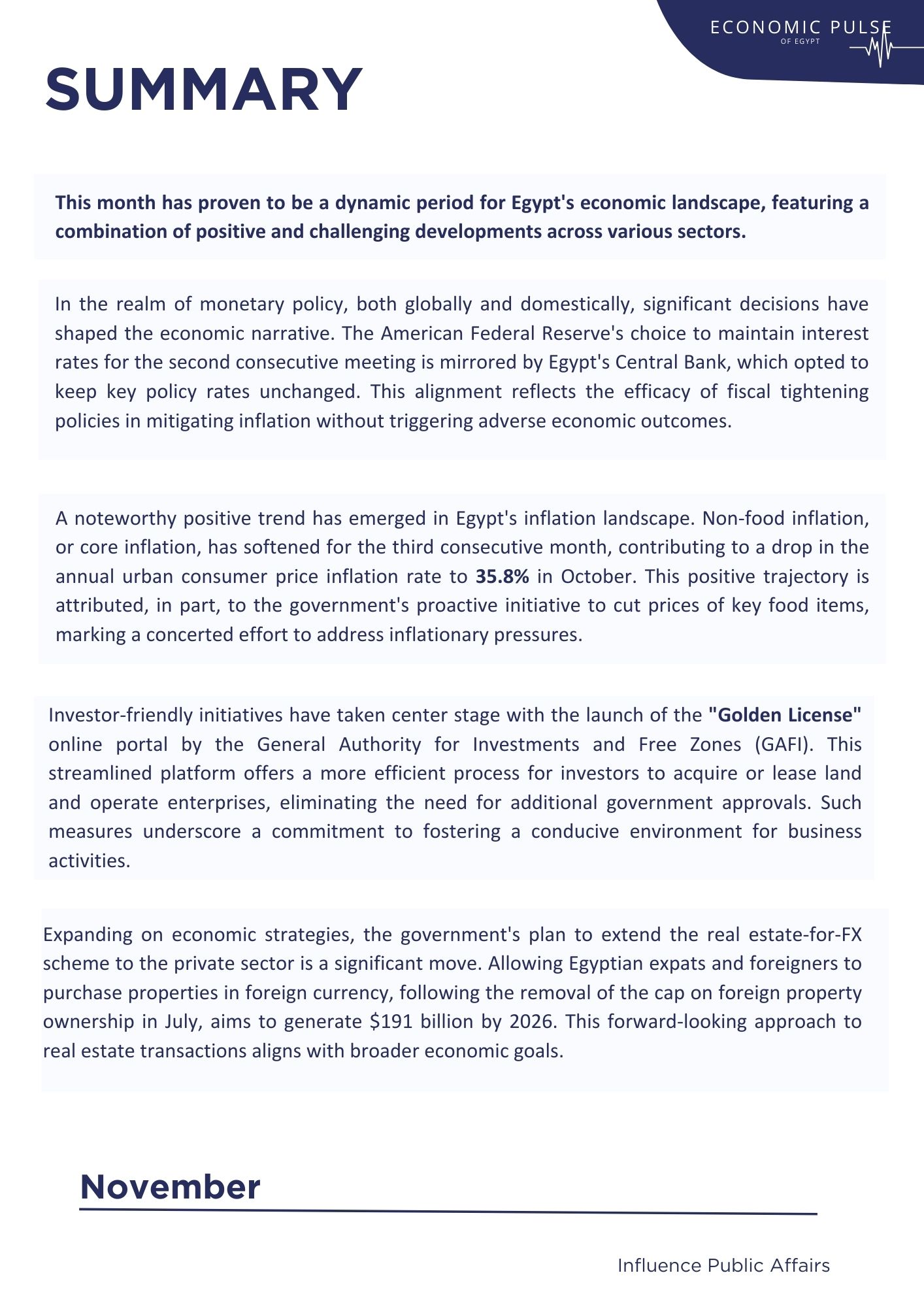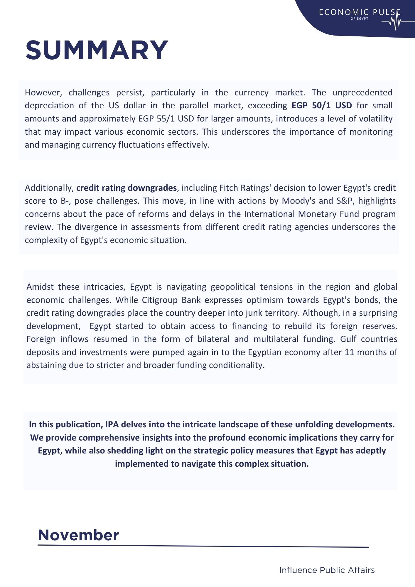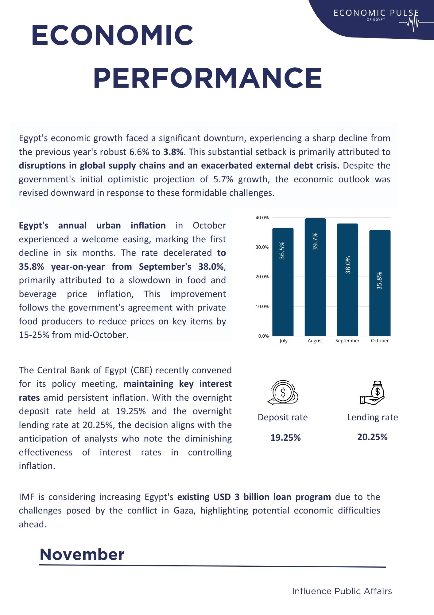 This month has proven to be a dynamic period for Egypt's economic landscape, featuring a combination of positive and challenging developments across various sectors.