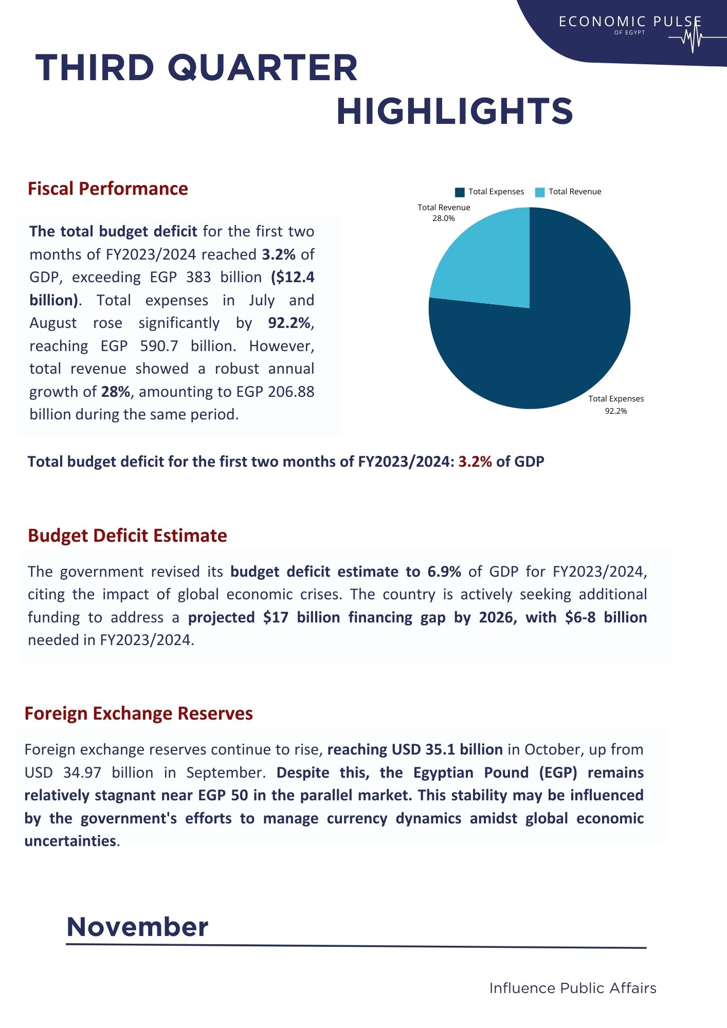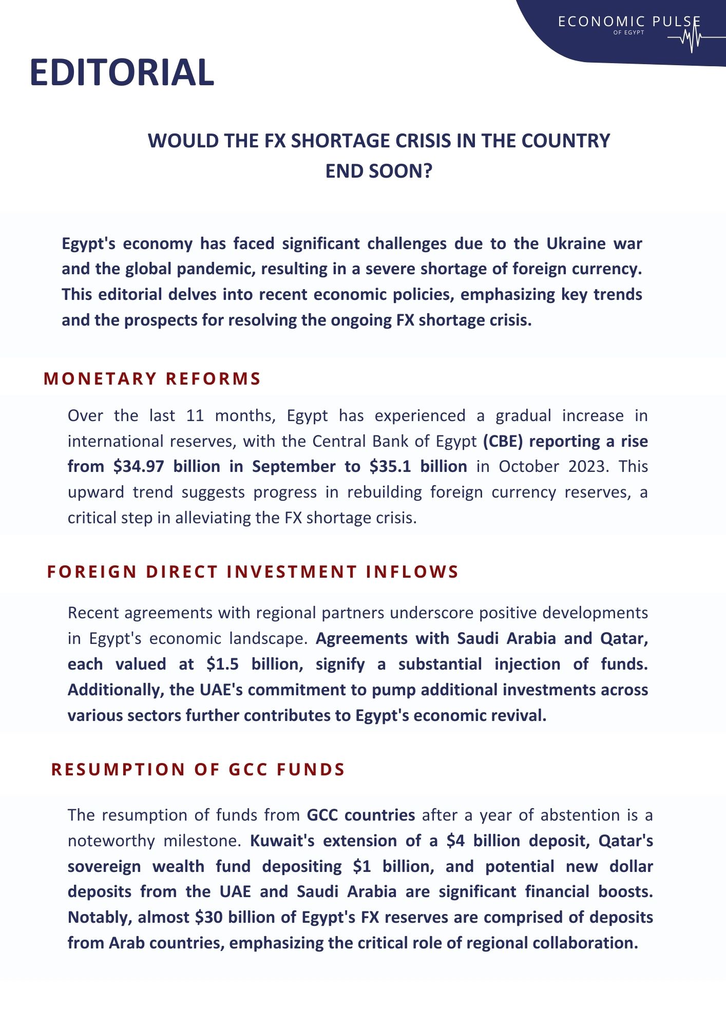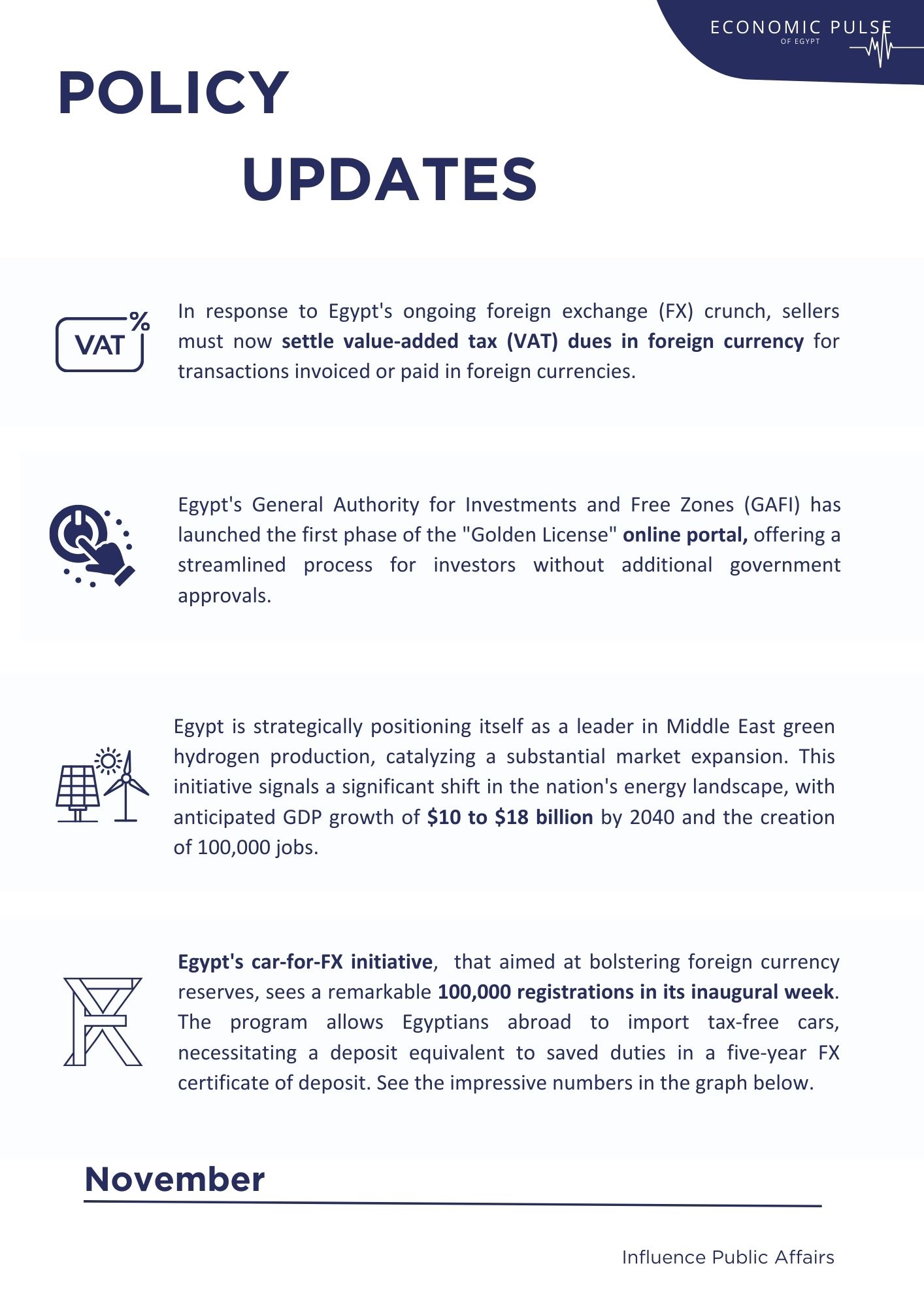 This month has proven to be a dynamic period for Egypt's economic landscape, featuring a combination of positive and challenging developments across various sectors.