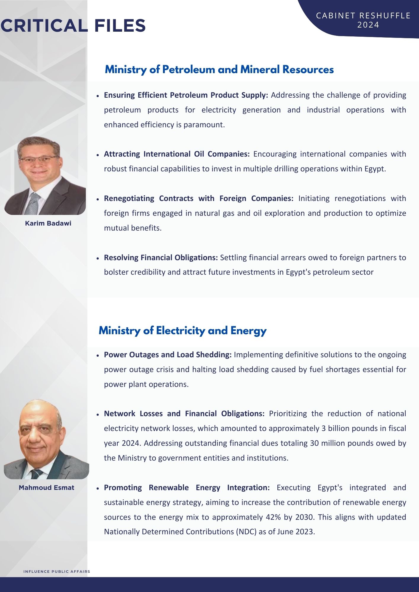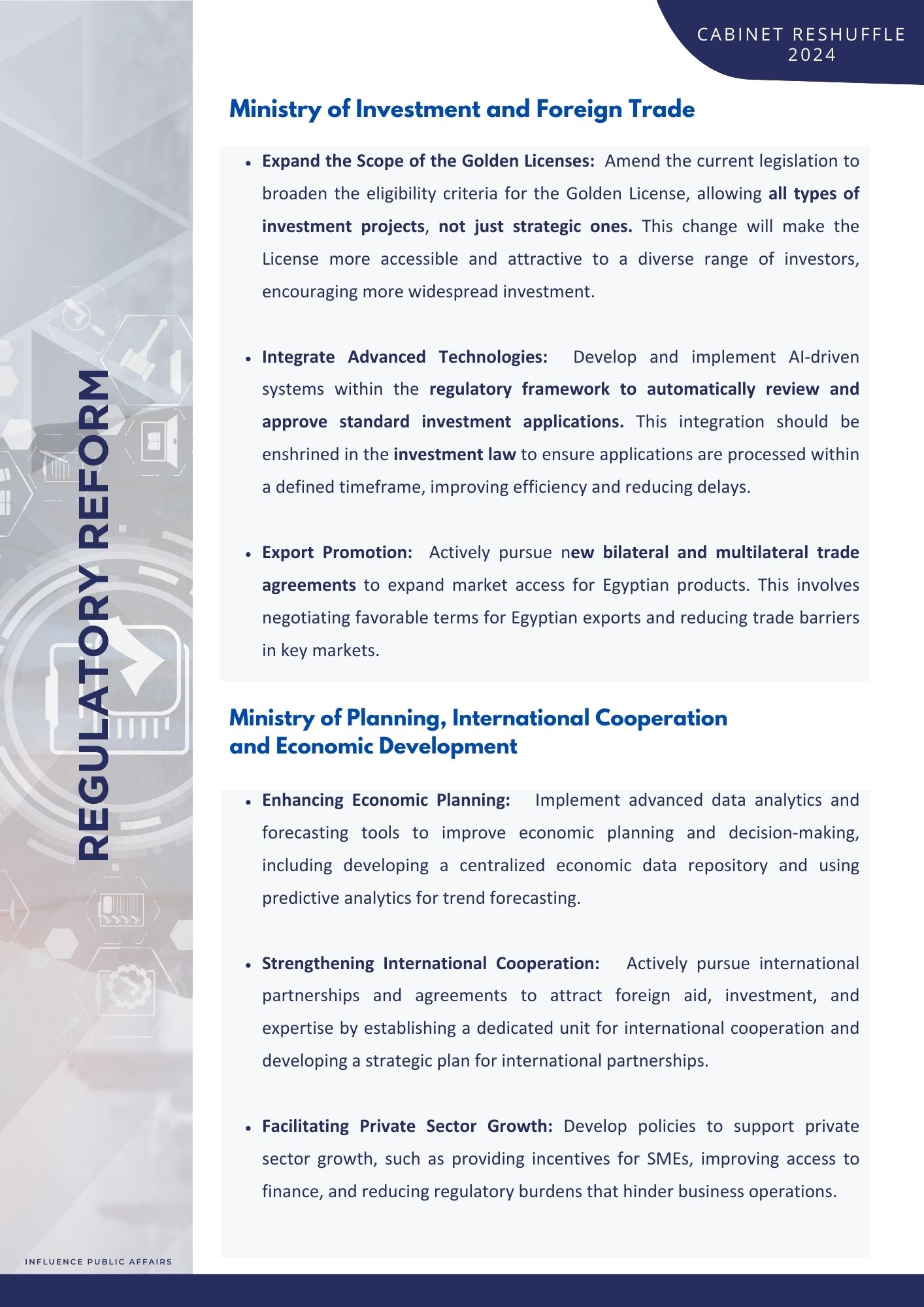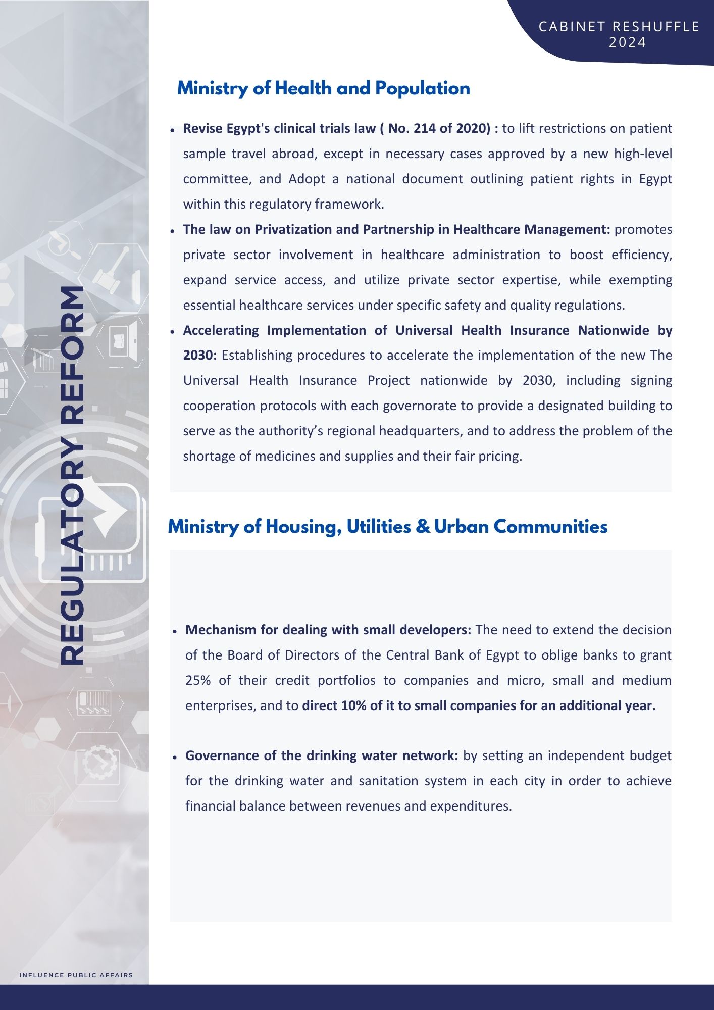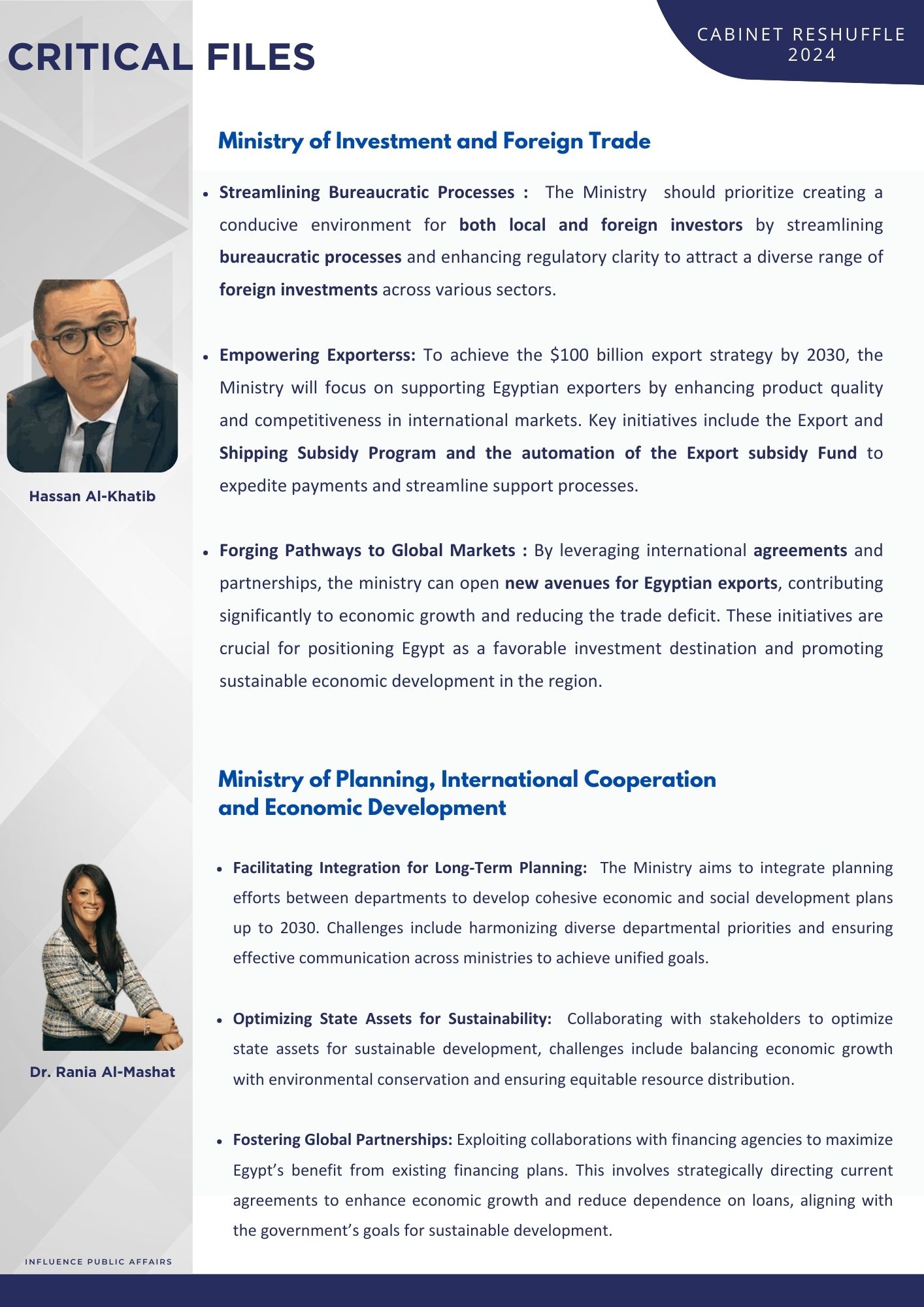 The government of Egypt has recently undergone a significant restructuring of its ministries, The most important features of the change in the new government formation in 2024 include changing 15 names, retaining 6 ministers, and merging a number of ministries. This change aims to address internal problems and challenges, especially in sectors such as health, electricity, and supply, in addition to the global challenges that affect the Egyptian market. IPA will focus on the Economic group. This reformation comes as part of a broader effort to enhance the efficiency and effectiveness of governmental operations, particularly in the economic sector, by creating and merging ministries to better align with the nation's priorities.